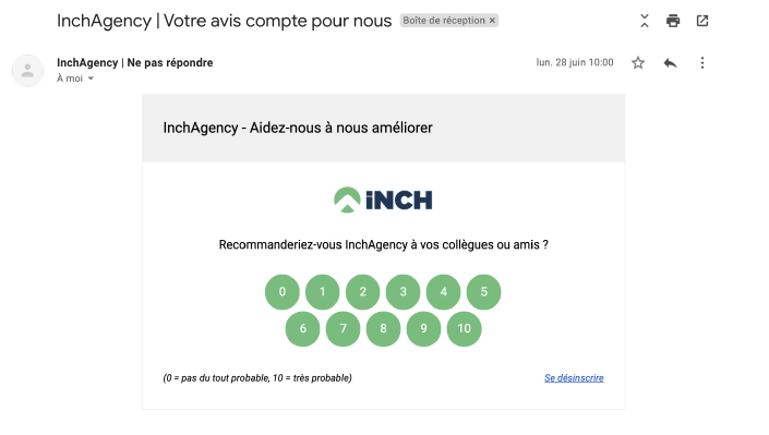 Pour activer la fonctionnalité NPS Inch, il suffit de le demander à votre Interlocuteur